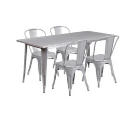 Fisher Commercial Grade Rectangular Metal Indoor-Outdoor Table Set With 4 Arm Chairs