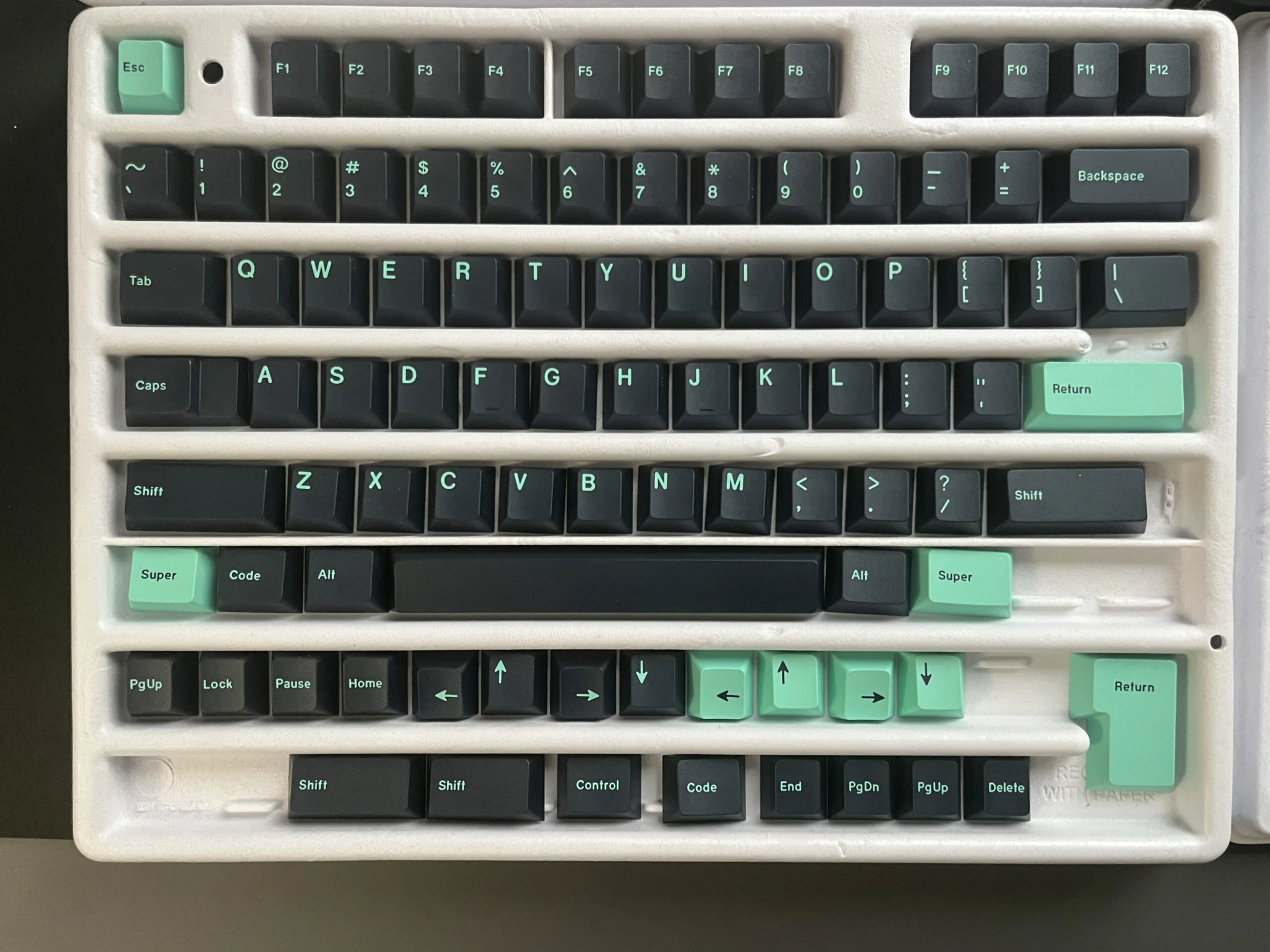 GMK Metropolis Midnight kit. Recently purchased off of reputable seller, however decided to go with another set instead and have this as an extra. The keycaps are unused and in near deadstock condition. However, the box has noticeable wear as it has been opened a couple of times for inspection and pictures.Â