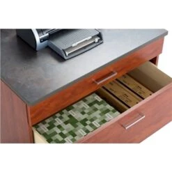- Drawers feature soft, self-closing mechanisms