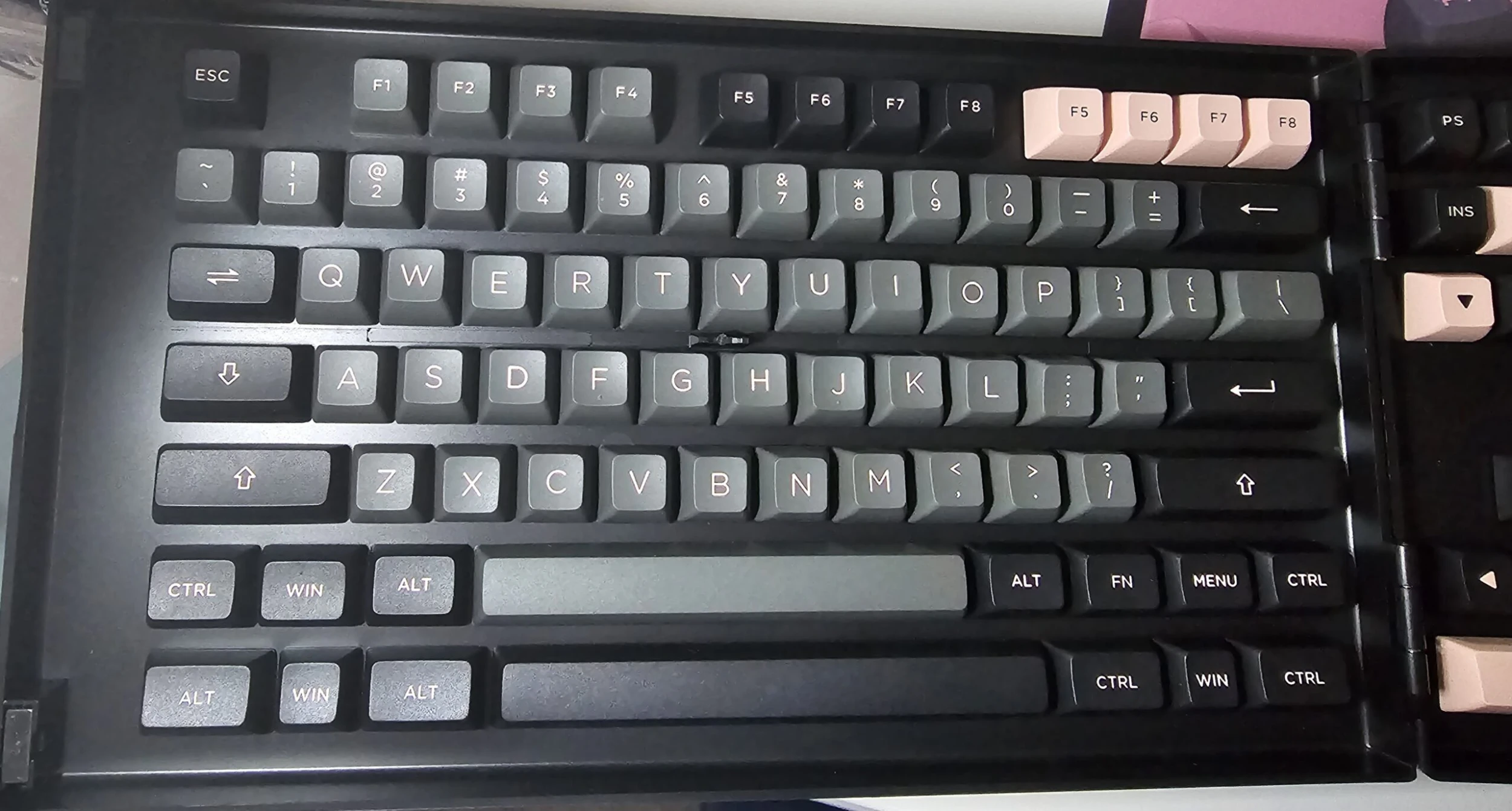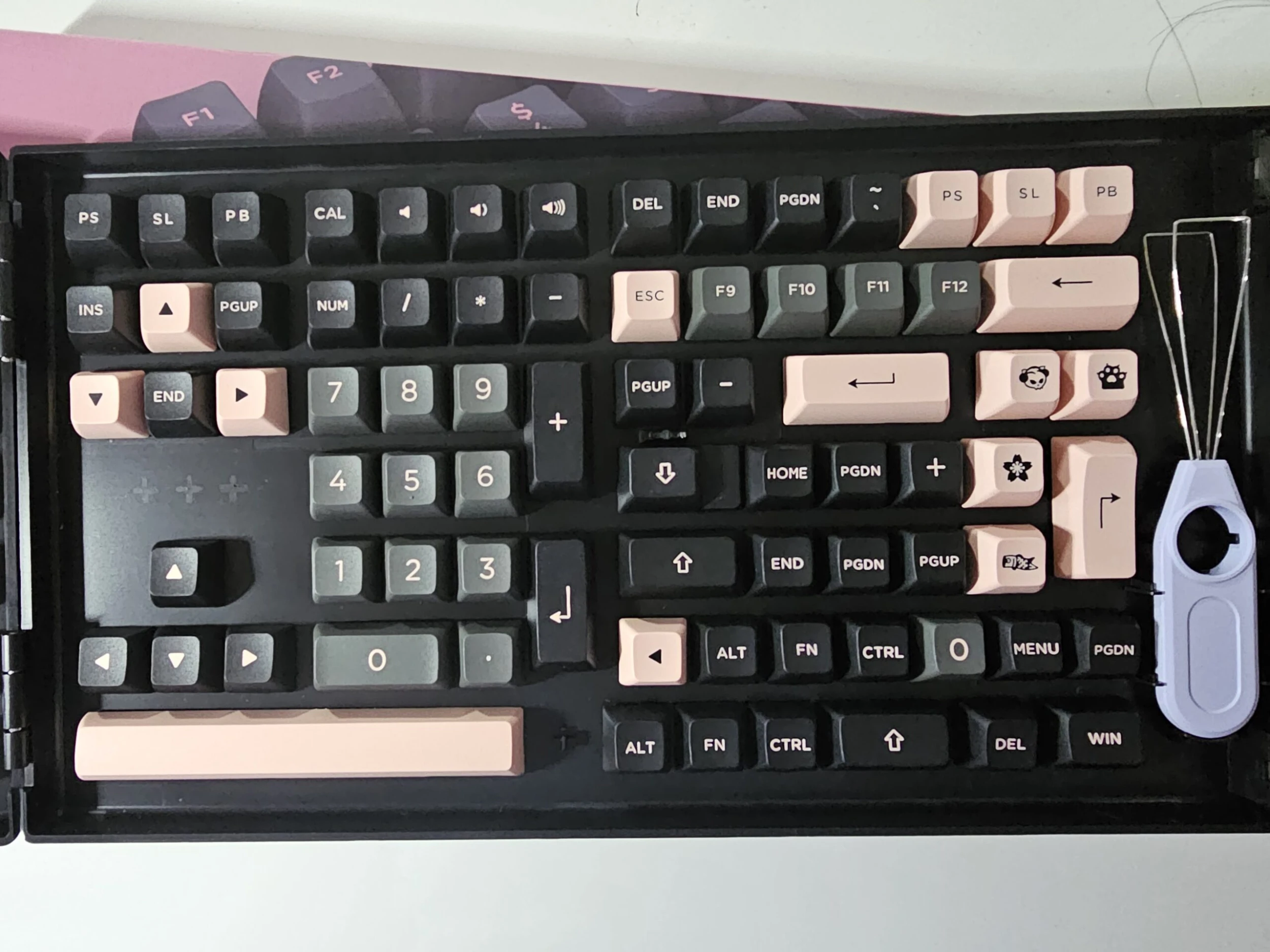Used Akko Black and Pink keycap set. Mounted once. ASA profile. Comes with keycap puller.Â