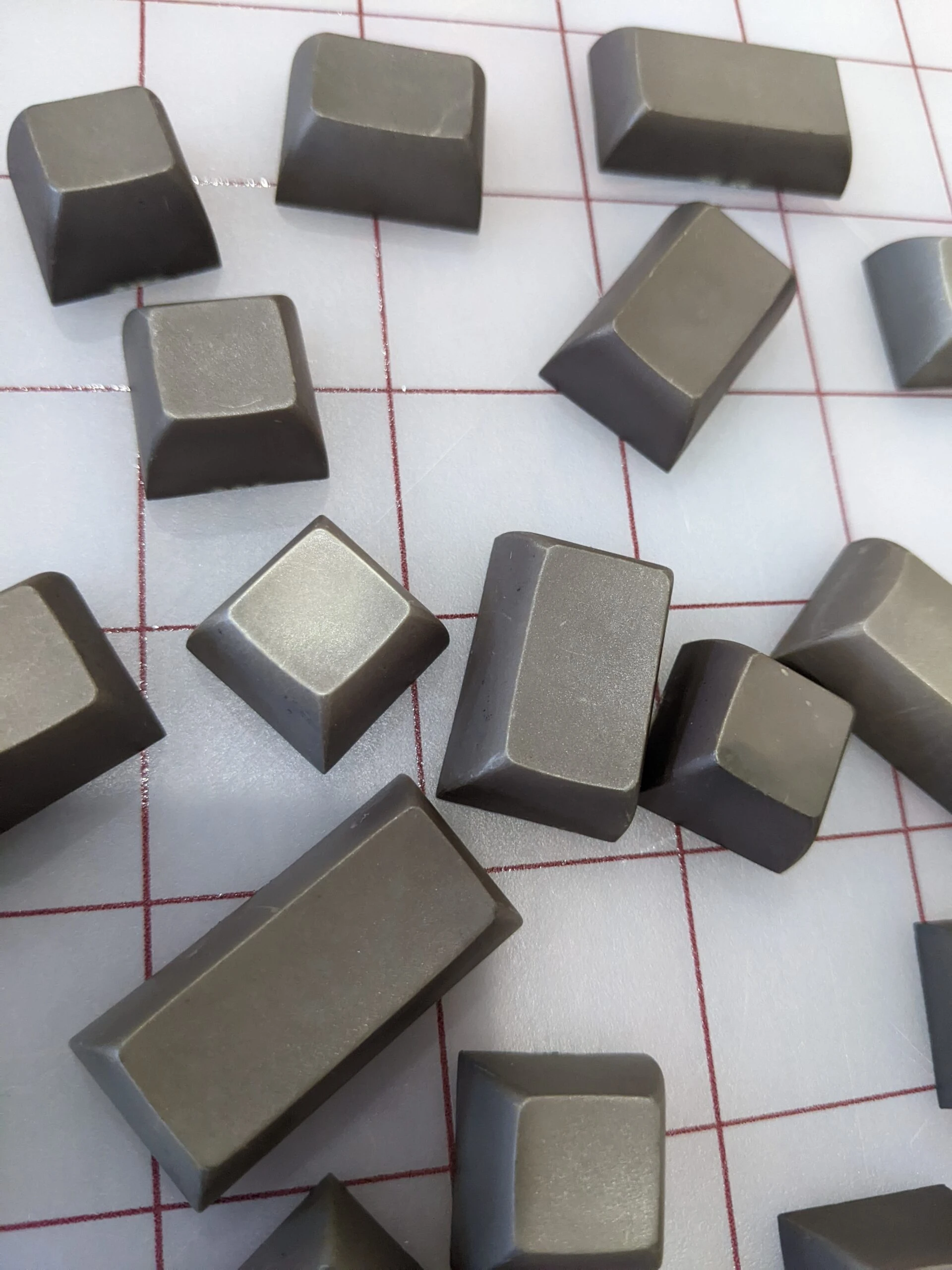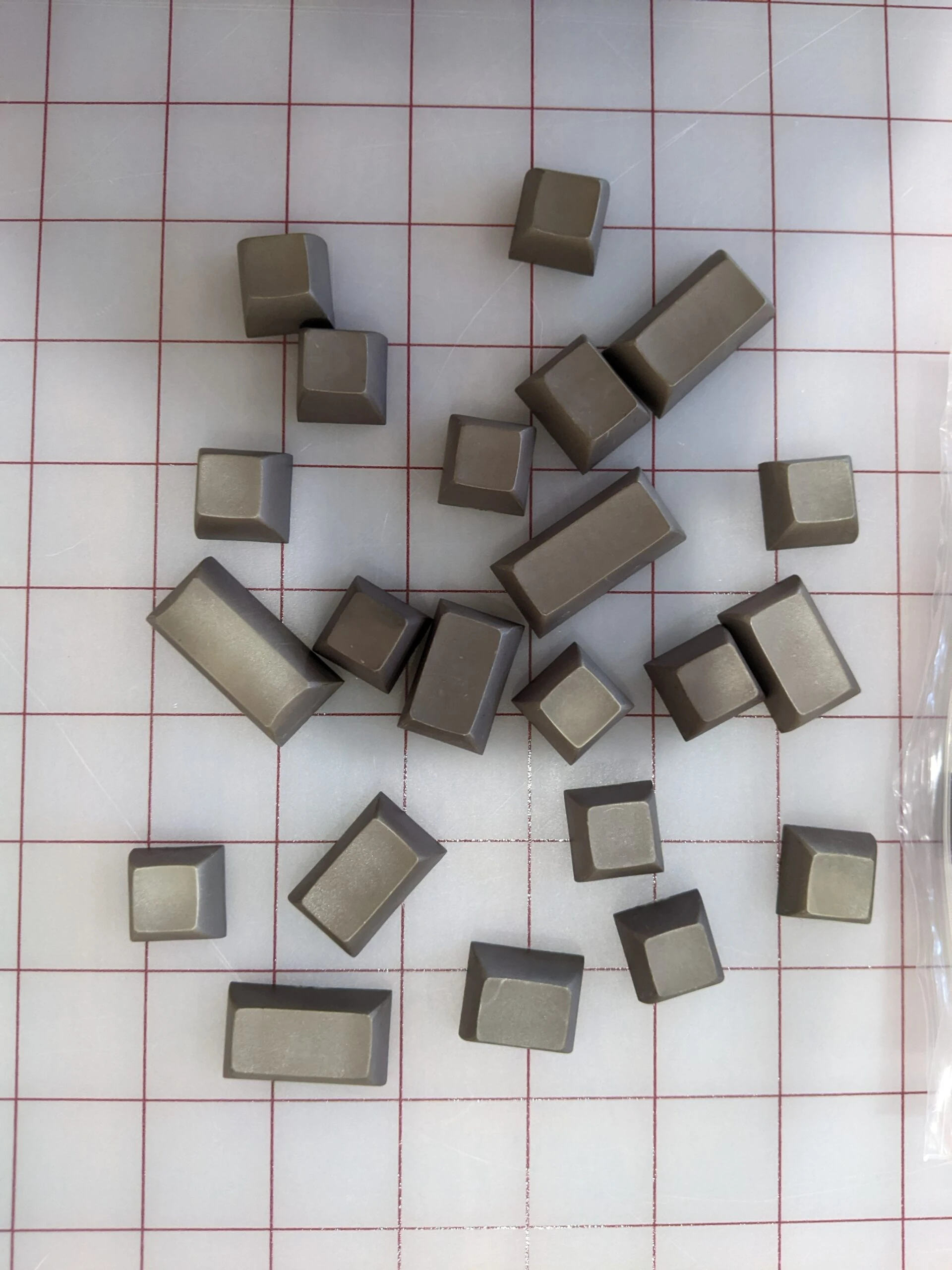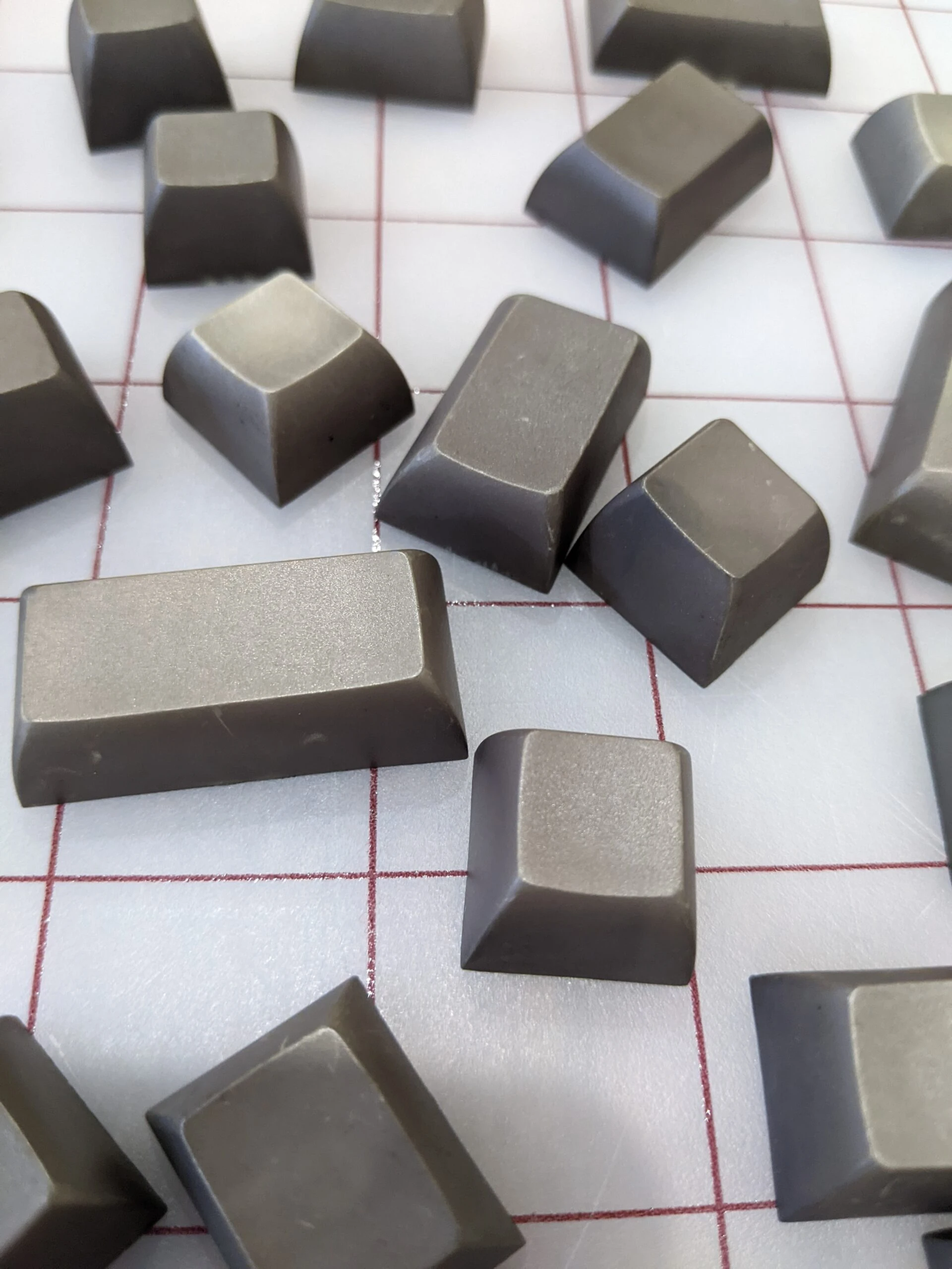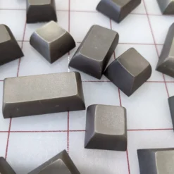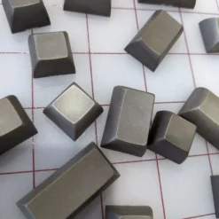 These caps have been dyed by hand and exhibit scratches and irregularities from that process. Color is a dark grey-brown with a green tinge. Photographs have been taken in both artificial white lighting and natural sunlight to show variation in tones. PBT, complete set without original tray.